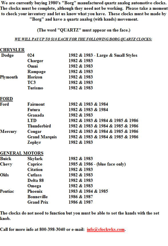 AUTOMOBILE CLOCKS WANTED!